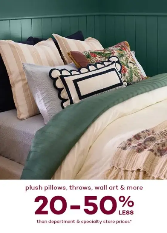 Limited time only! Shop in store and get 20-50% less on plush pillows, throws, wall art & more.