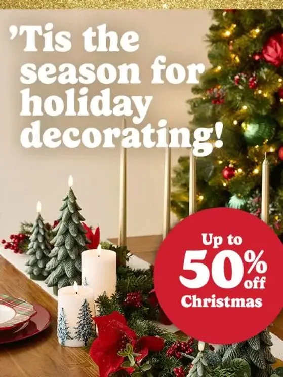 While supplies last! Shop in store and save up to 50% off on Christmas decor.
